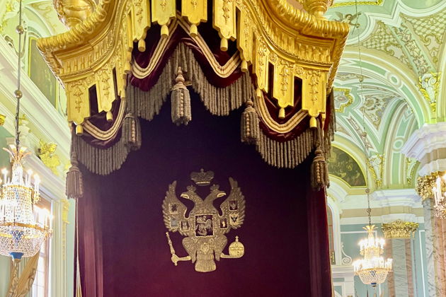 • Вы рассмотрите прекрасные интерьеры собора, старинный позолоченный иконостас в виде триумфальной арки, «Царское место»;