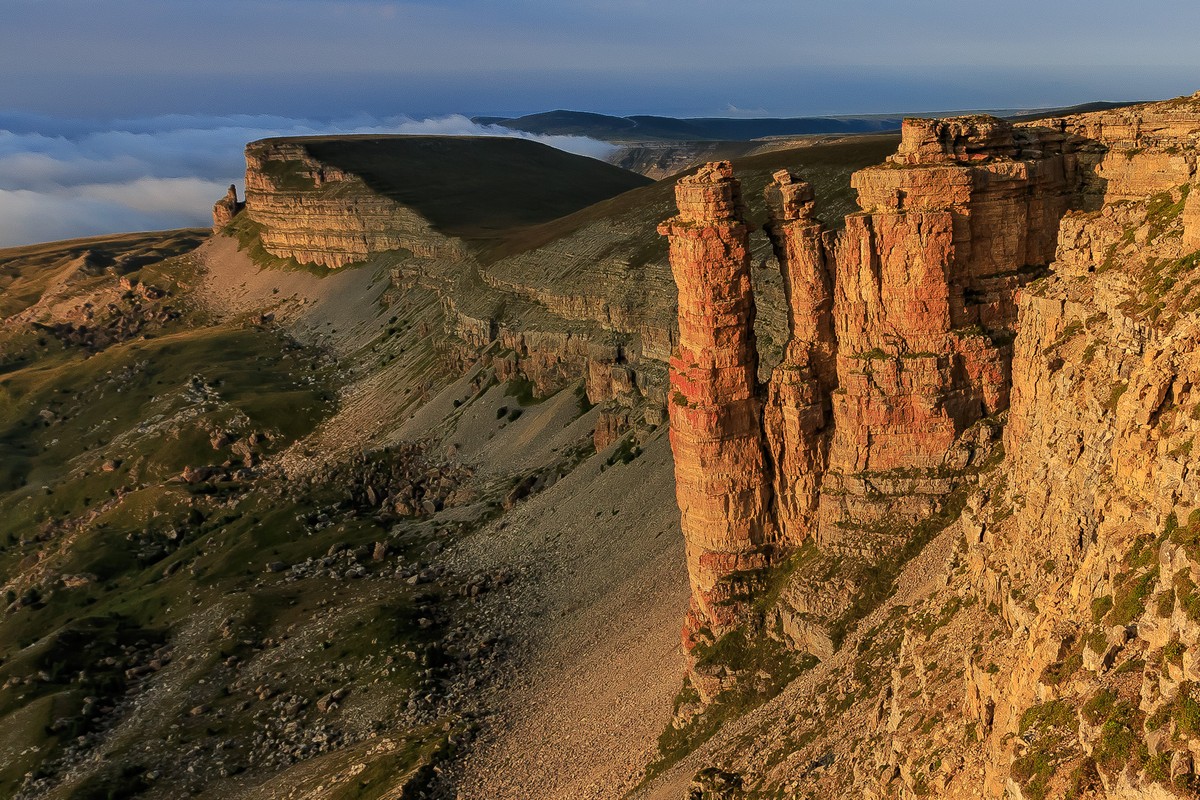 Бермамыт (2,5 часа). Затем, пробираясь горными дорогами, мы заедем на плато. Заедем и сразу оценим пейзажи вокруг: просторы, горы на горизонте, обрывы… Вы увидите Эшкаконское водохранилище с Боргустанским хребтом вдали на западе, плато Канжол на востоке. Проедем ещё чуть-чуть и окажемся у крайней точки плато, с которой открывается потрясающий вид на Эльбрус и Кавказский хребет. Бермамыт похож на Гранд Каньон (и ничуть не уступает ему по красоте): вы полюбуетесь скалами Два монаха и природным амфитеатром. А ещё пройдёте по мостику над пропастью!