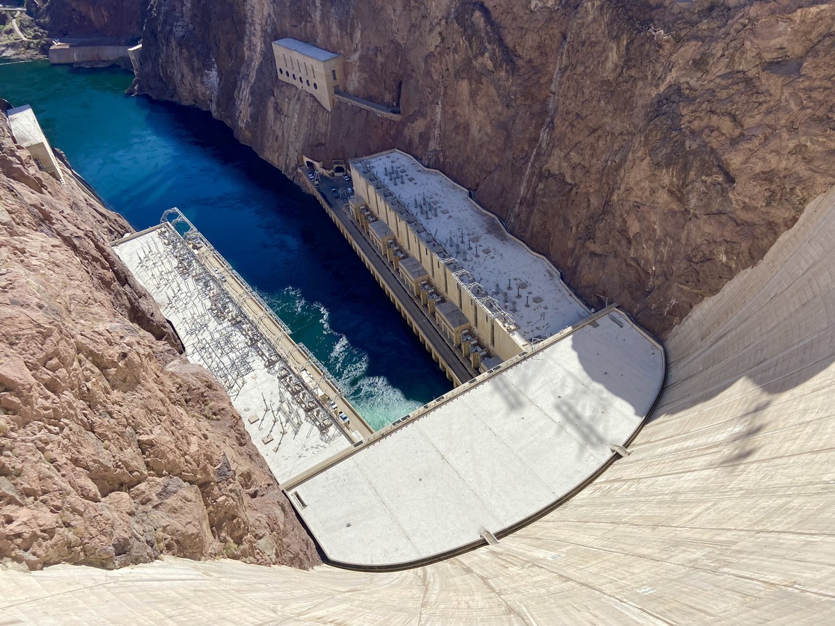- Мы прогуляемся по огромной плотине, перекрывающей реку Колорадо