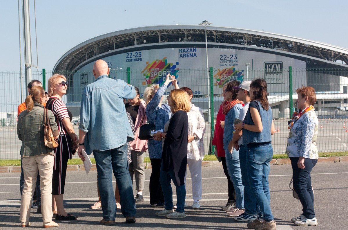 - Стадион «Ак Барс Арена», или «Казань-Арена» (опционально за доп. плату). Здесь принимали Универсиаду-2013, ЧМ по водным видам спорта и матчи ЧМ по футболу в 2018 году. Вы побываете в закрытых для обычного болельщика местах — в раздевалке футбольной команды «Рубин», в креслах для футболистов и СМИ в конференц-зале, на тренировочном поле. Мы даже выйдем, как настоящая футбольная команда, на поле стадиона, рассчитанного на 45 тысяч человек!
