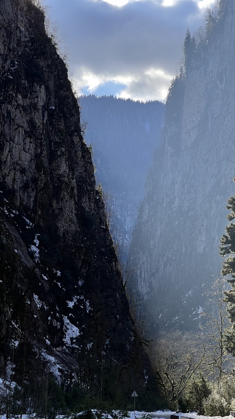 Место, где горы смыкаются над дорогой, создавая захватывающий пейзаж.