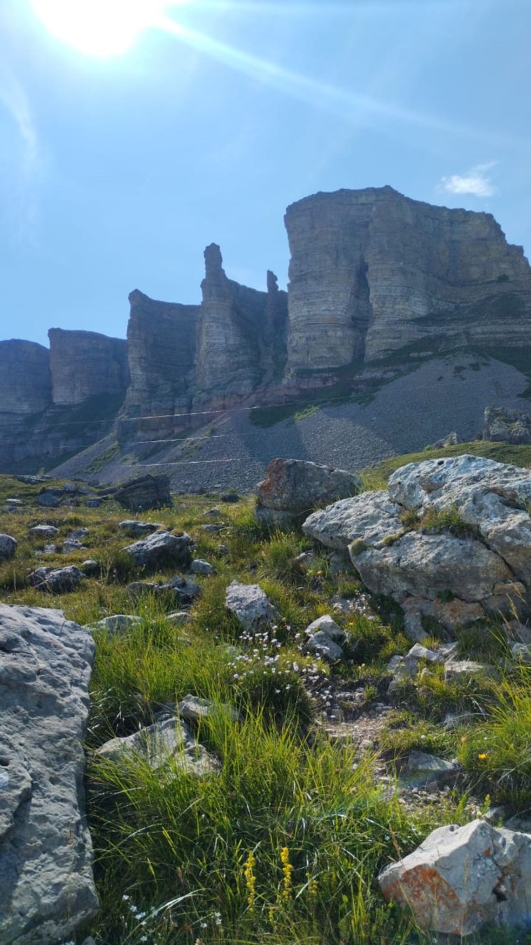 Добравшись до плато, вы полюбуетесь видами на Малый Бермамыт, Большой Бермамыт, скалы-монахи, Амфитеатр, мост над пропастью, лавочку счастья. Также перед вами откроется шикарный вид на Эльбрус.