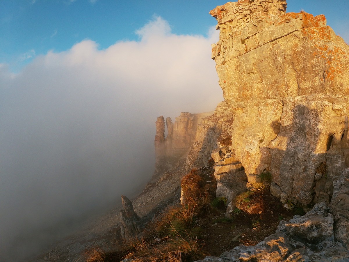 - Добравшись до плато, полюбуемся видами на Малый Бермамыт, Большой Бермамыт, Скалы-монахи, Амфитеатр, мост над пропастью, лавочку счастья. Также перед нами откроется шикарный вид на Эльбрус.