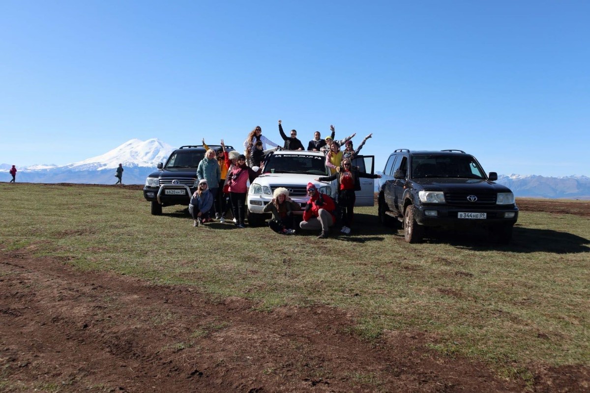 Отведать свежеприготовленные хычины на свежем воздухе и полюбоваться Эльбрусом в мини-группе