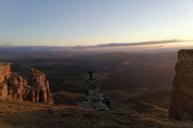 Вы посетите красивейшие место, часть скалистого хребта Большого Кавказа, откуда открывается великолепный вид на самую высокую вершину в России и Европе Эльбрус и Кавказский хребет. По пути на плато вы возможно увидите местную живность и полюбуетесь на красивейшие локации Бермамыта: смотровой мостик, амфитеатр, Скалы монахи, скала арфа. И конечно же встретим прекрасный рассвет! Дополнительные маршуты: гришкина балка, эшкакон, медовые водопады.