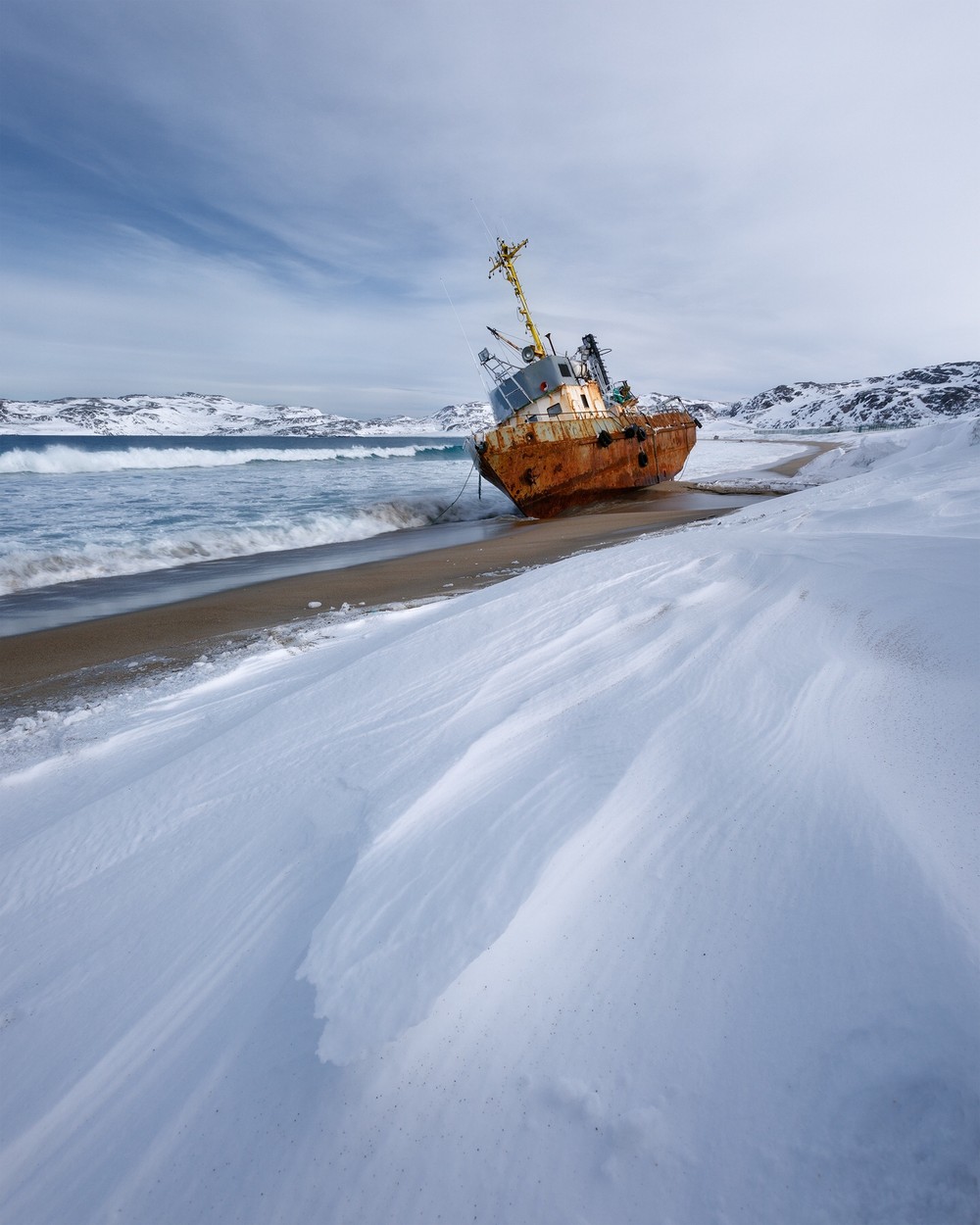 09:00-10:00 — достопримечательности Териберки: кладбище кораблей, песчаный берег Баренцева моря, качели на берегу, арт-объекты, заброшенные дома, пляж «Яйца дракона»