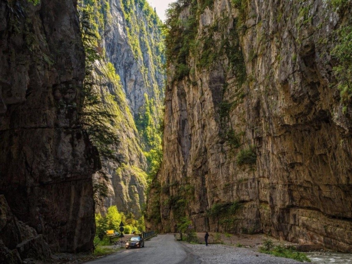 Удивимся тому, как величественные скалы высотой до 400 метров сужаются до нескольких десятков метров — создавая ощущение природного коридора.