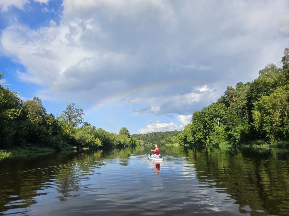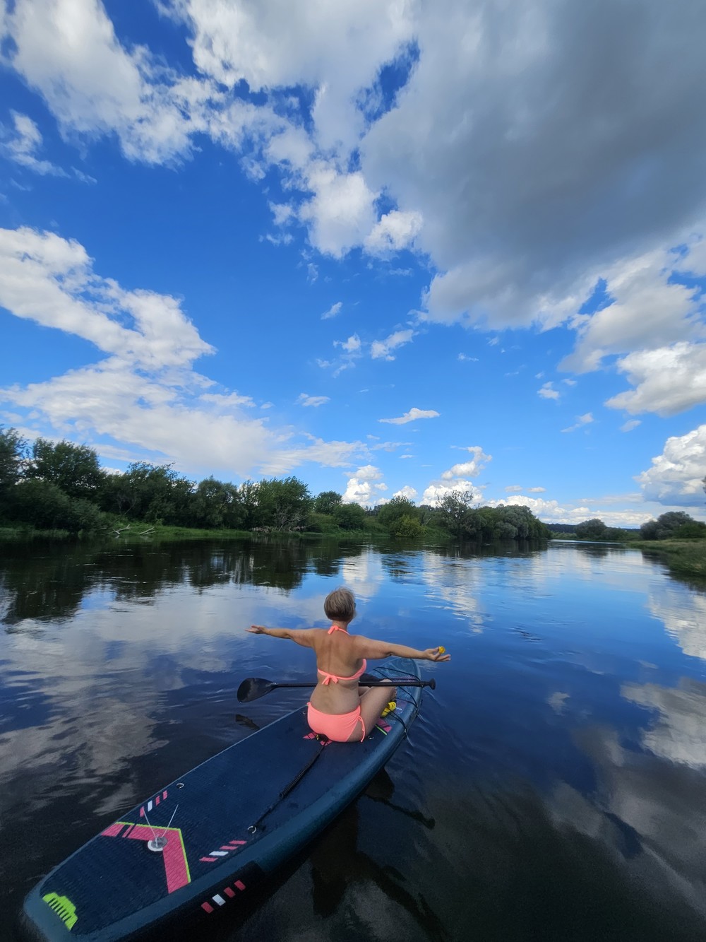 Очень понравилась сплав- прогулка! Сначала река нас встретила сильным ветром, потом грозой с ливнем. Но последняя часть пути была под ярким солнцем и синим небом: релакс, покой,красота. Всем рекомендую!