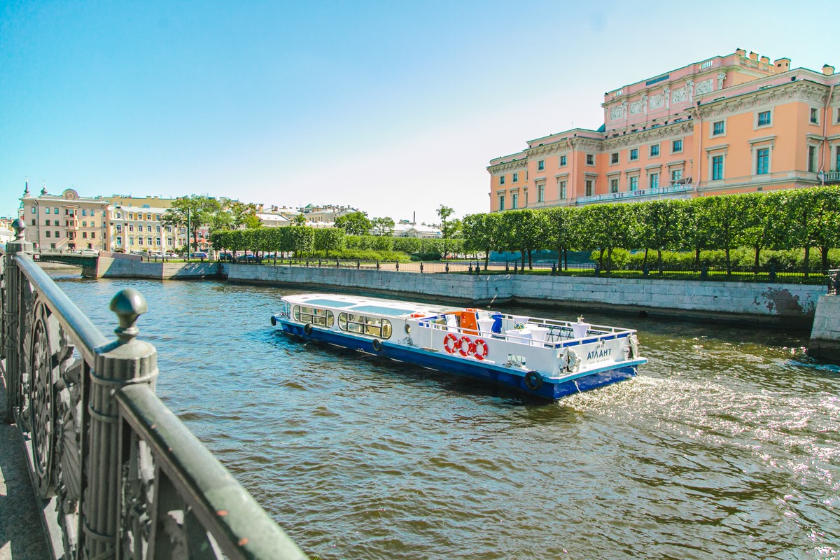 Водная прогулка — отличная возможность рассмотреть Петербург с лучших ракурсов. На теплоходе вы пройдёте под мостами Фонтанки, Крюкова канала и Мойки, полюбуетесь парадными фасадами и набережными города.