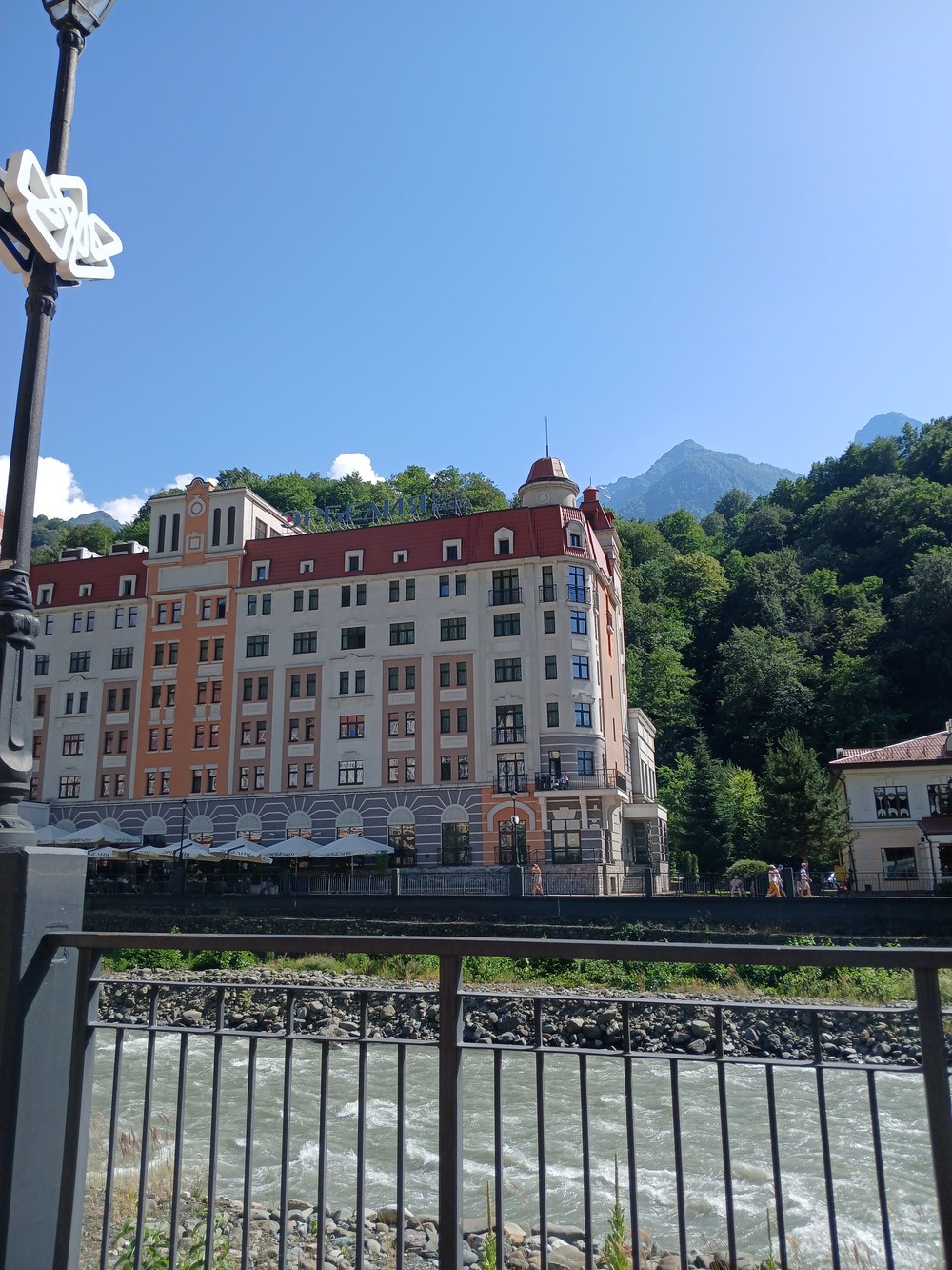 Последней мы возьмем «космическую» высоту — панорамную площадку на крыше центра «Галактика». Перед вами вырастут вершины Розы Хутор Большой и Малый Чугуш, а с другой стороны — пятиглавая красавица Аибга.