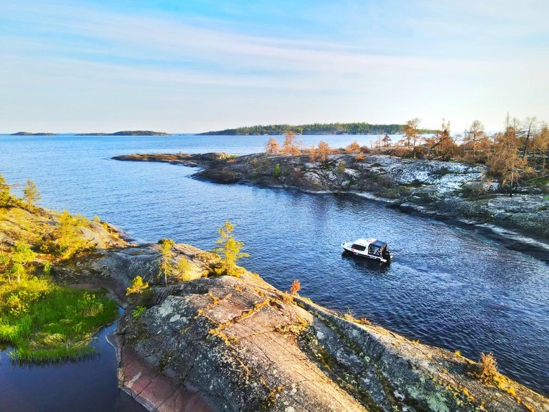 Ладожские шхеры — 1,5 часа водной прогулки с высадкой на остров Хонкасало («Крыша Ладоги») и подъёмом на скалу Вахтимяки.