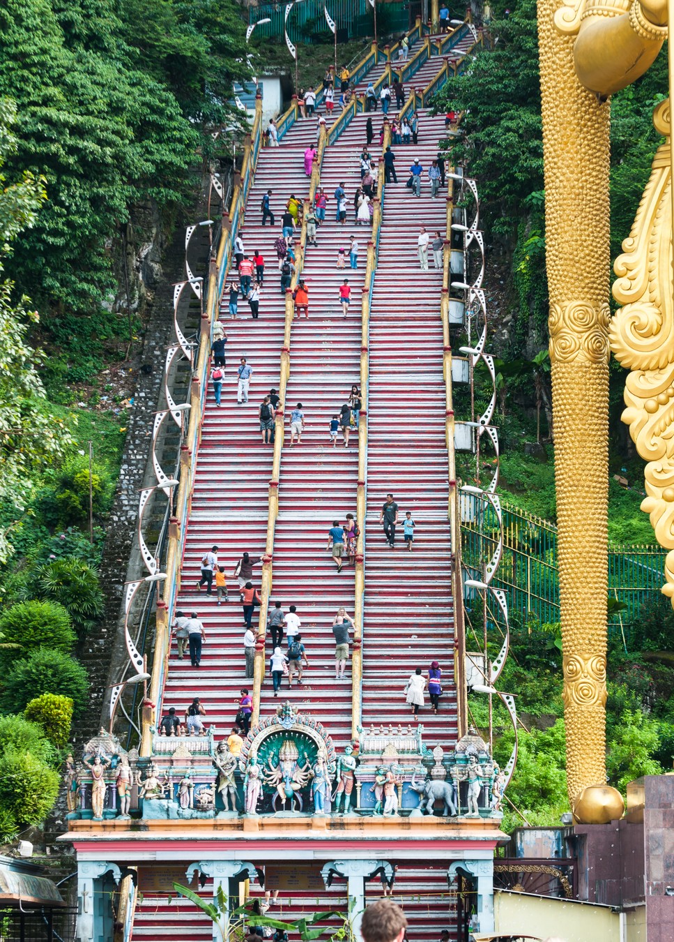 В 16:00 выезжаем из Куала-Лумпура. Всего в 15 км от города находятся пещеры Бату. У нас будет час, чтобы погулять по ним, насладиться неземными видами. Также мы совершим восхождение по 272 ступенькам к главному храму сына Шивы — бога Муругана. У лестницы вас будет ждать 43-метровая позолоченная статуя этого божества.
