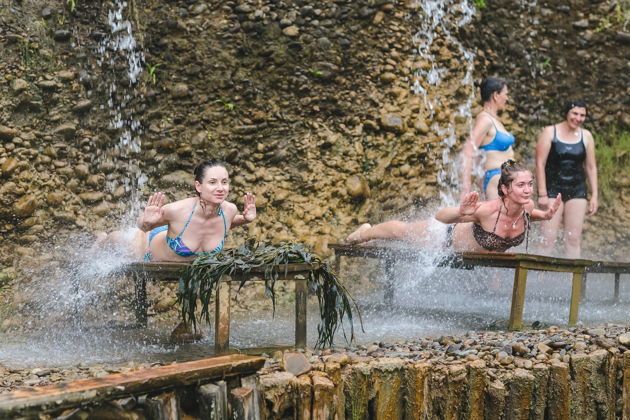 • В некоторых случаях понадобится полотенце-подстилка, если захочется прилечь на скамейку под струями, свободно стекающими с высота небольшого утеса.