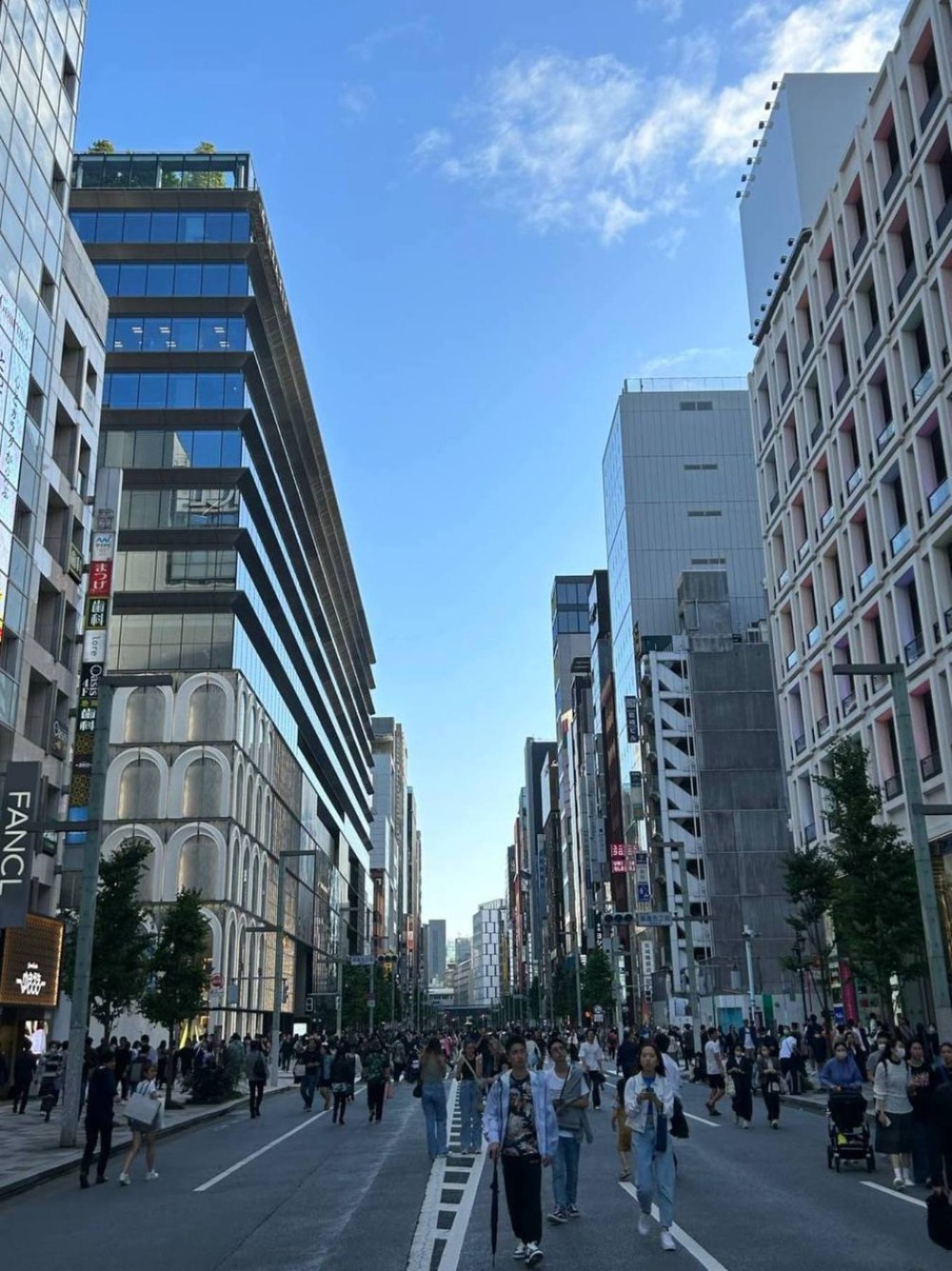 Модный район Гинза. Это один из самых известных кварталов в Токио. Вы полюбуетесь зданиями с интересным дизайном, где расположены фешенебельные магазины и бутики знаменитых брендов.