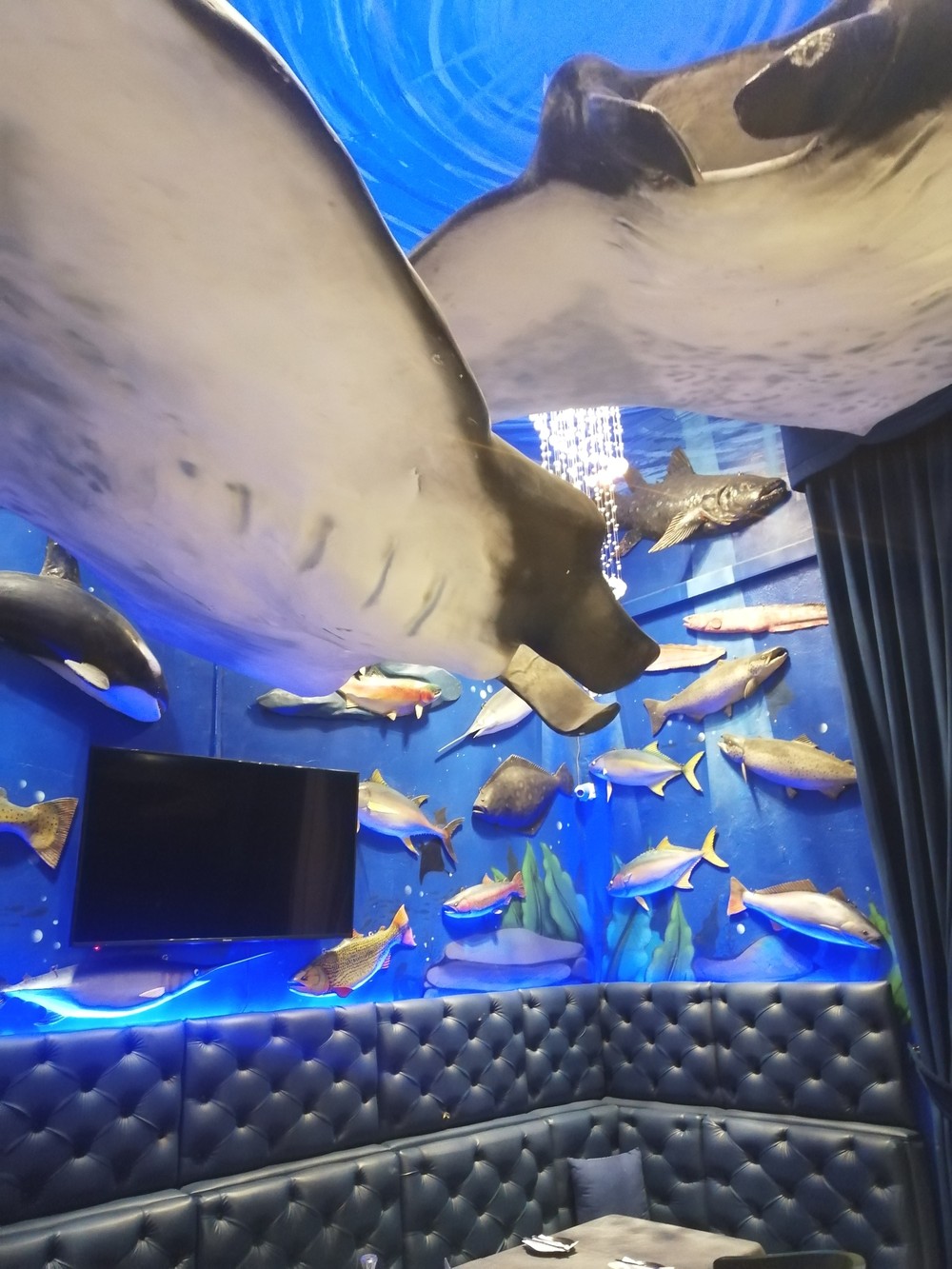 Ресторан с морской тематикой. Каждый зал в нём выполнен в своём стиле: вы сможете пообедать на стилизованном борту корабля, в капитанской каюте или подводной лодке. Блюда здесь приносят официанты-роботы.