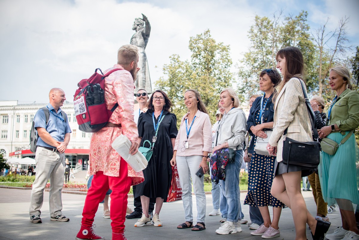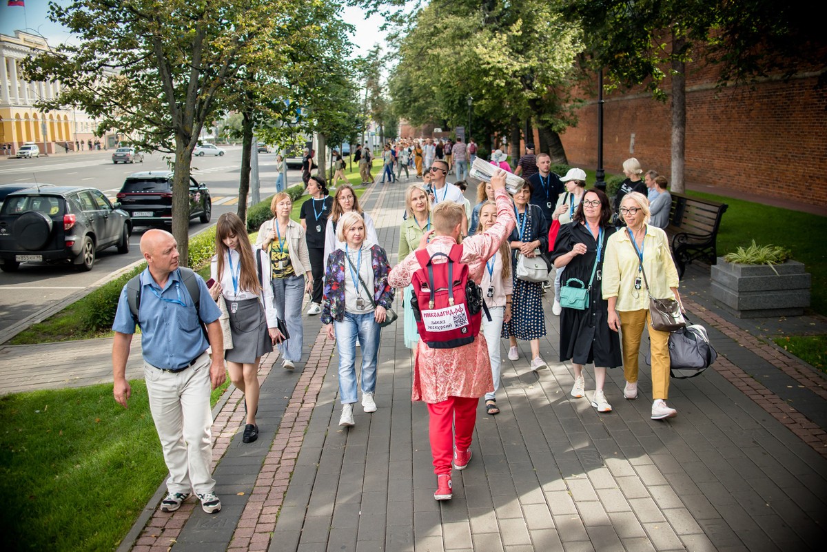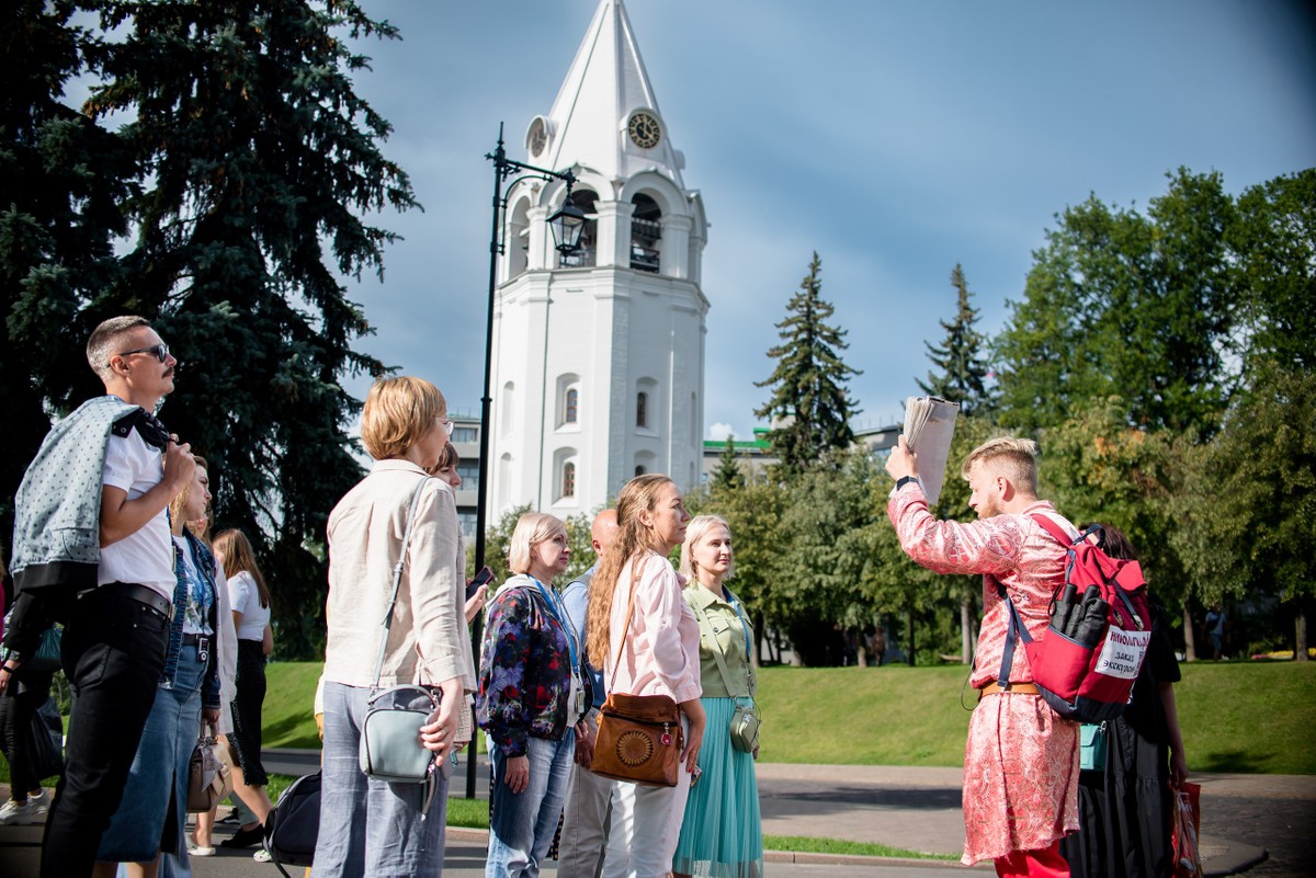 Мы будем изучать кремль и окрестности. Мои экскурсии отличает яркая подача фактов в стиле «Орла и Решки», но в самобытной манере. Я выдам вам приёмник с наушниками, чтобы вы могли слышать меня на расстоянии до 60 м — так что необязательно всё время быть рядом и держать ухо востро. Помимо всего того «материала», что нам предоставит сам город, я покажу архивные фото и другой визуал, чтобы вы сравнили внешний вид Нижнего в разные эпохи и не только.