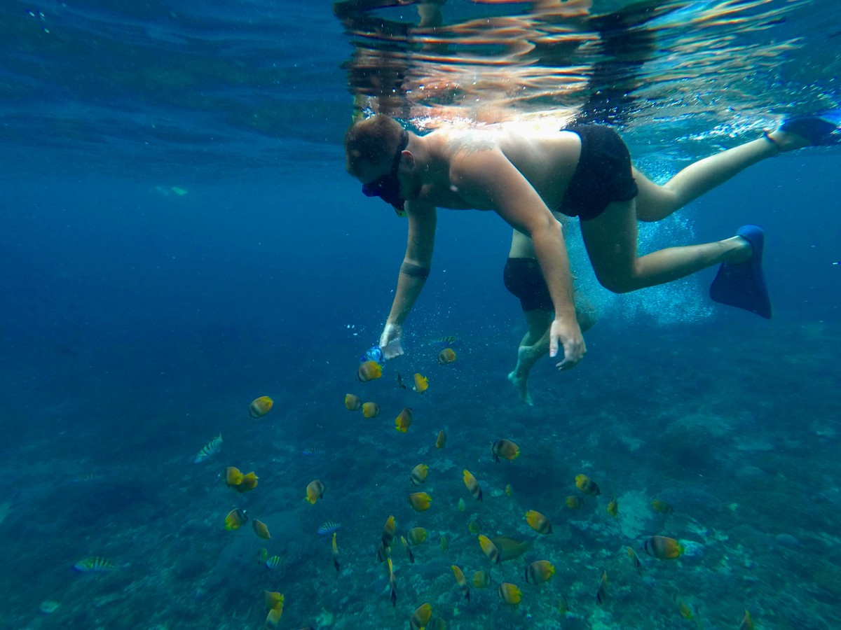 На рассвете вы отправитесь в океан, чтобы поплавать рядом с дельфинами в их естественной среде обитания. Это не контактное плавание, а деликатное наблюдение за животными. Затем можно заняться снорклингом возле коралловых рифов.