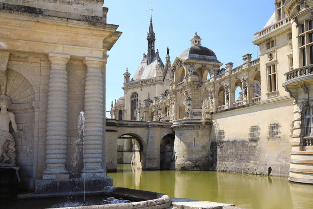 Здесь вас ждут шикарные апартаменты принцев Конде с изысканным интерьером, галерея живописи, уступающая по масштабам лишь Лувру, богатая библиотека с редкими рукописями, а также просторный парк с зеркальными прудами, каналом и знаменитые конюшни.