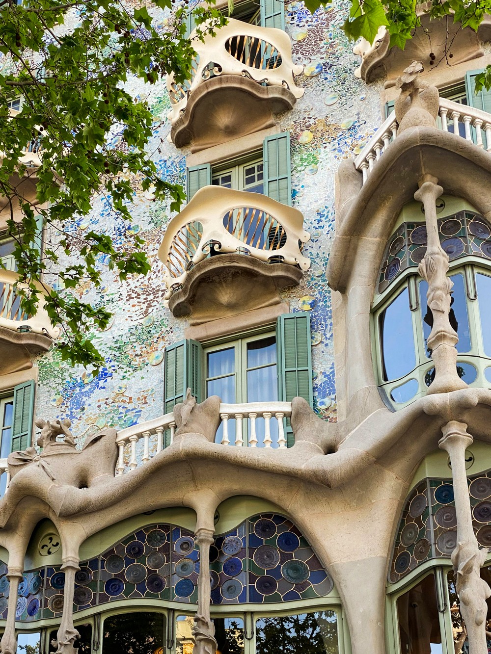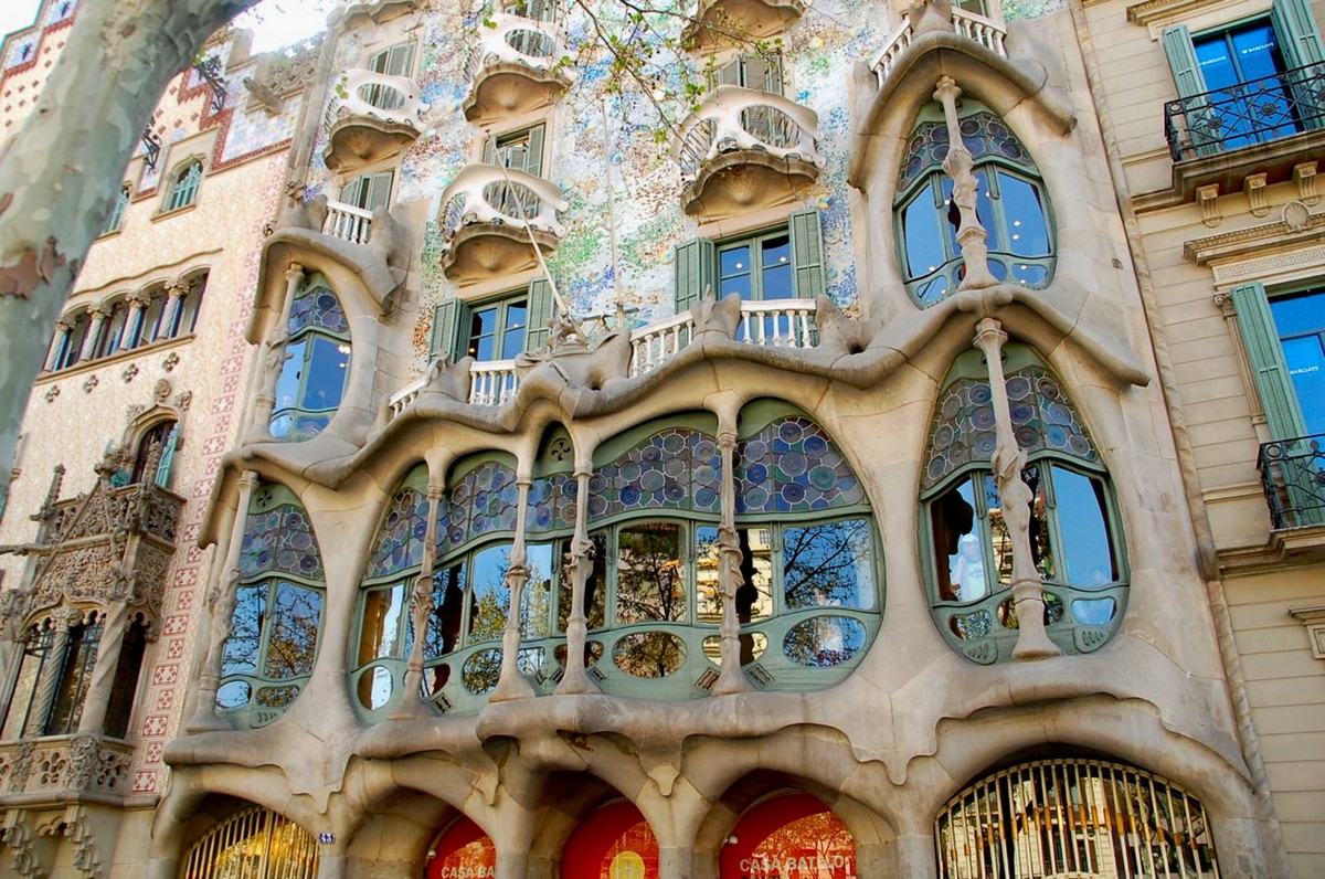 - Дом Бальо — пожалуй, самый необычный в Барселоне. Его причудливые балконы похожи на черепа, колонны — на кости, а фасад — на гигантского дракона. Я расскажу, почему внутри дома нет ни одного прямого угла, а интерьер напоминает декорации фантастического фильма