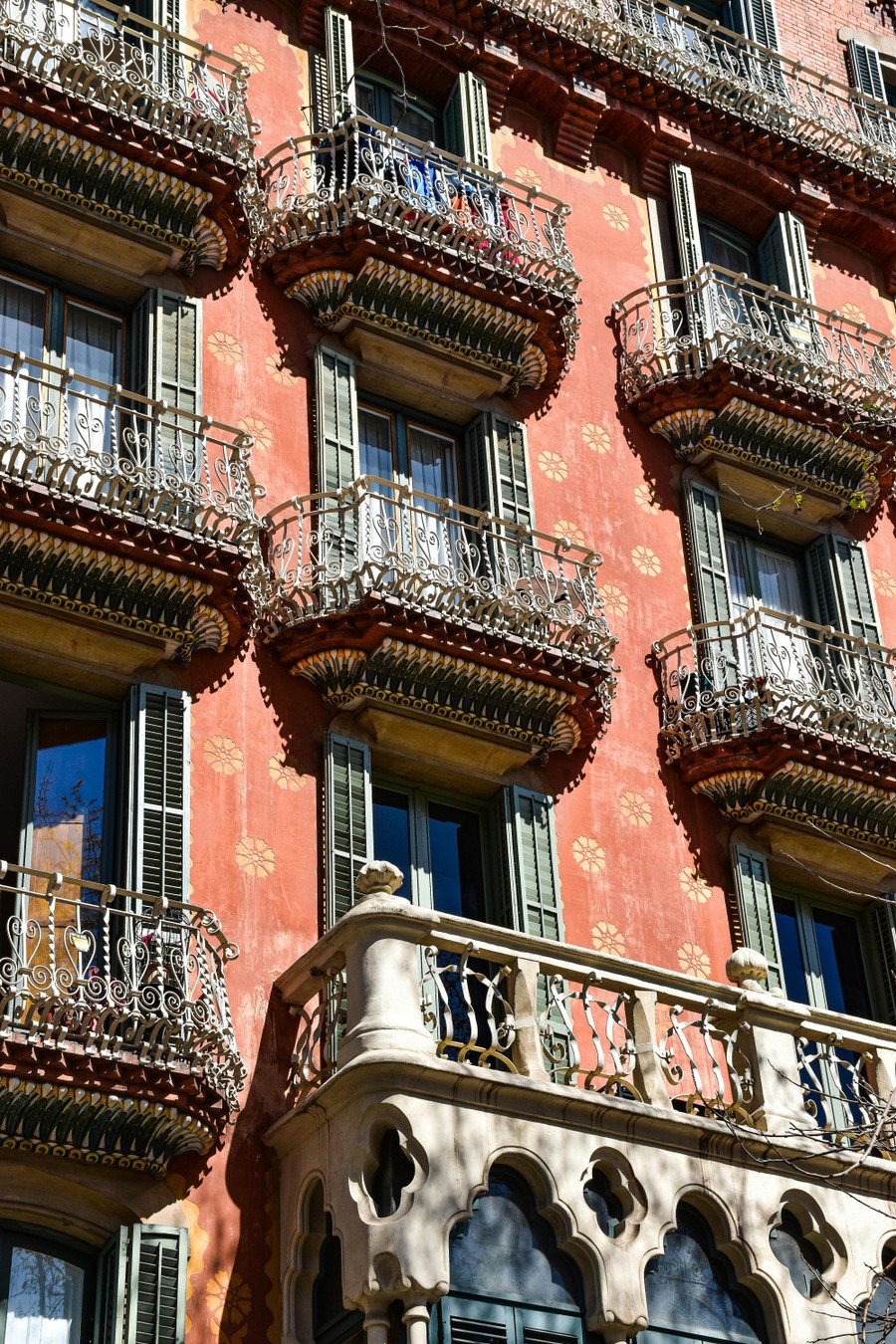 - Детали по дороге: изящные скамейки-фонари, причудливая плитка бульвара Грасия, витражи, спрятанные в непримечательных подворотнях, и тайный дворик с необычным видом на Ла Педрера