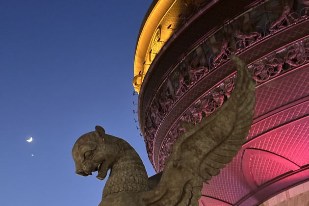 Мы пройдемся по набережной и полюбуемся отражением Казанского Кремля в водах реки Казанки, посмотрим на дворец бракосочетания «Казан» и находящихся рядом скульптур мифических зилантов и барсов. Зиланты берегут семьи от невзгод, а барсы — символ республики Татарстан. Увидим футбольный стадион — один из самых вместительных в России. Здесь эмоции рождают энергию!