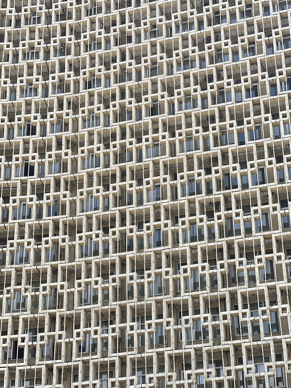 - Гостиница «Узбекистан». Наиболее запоминающийся элемент здания — узорчатая солнцезащитная решётка, так называемая «панджара», увеличенная до гигантского размера. Показательный образец «южного брутализма».