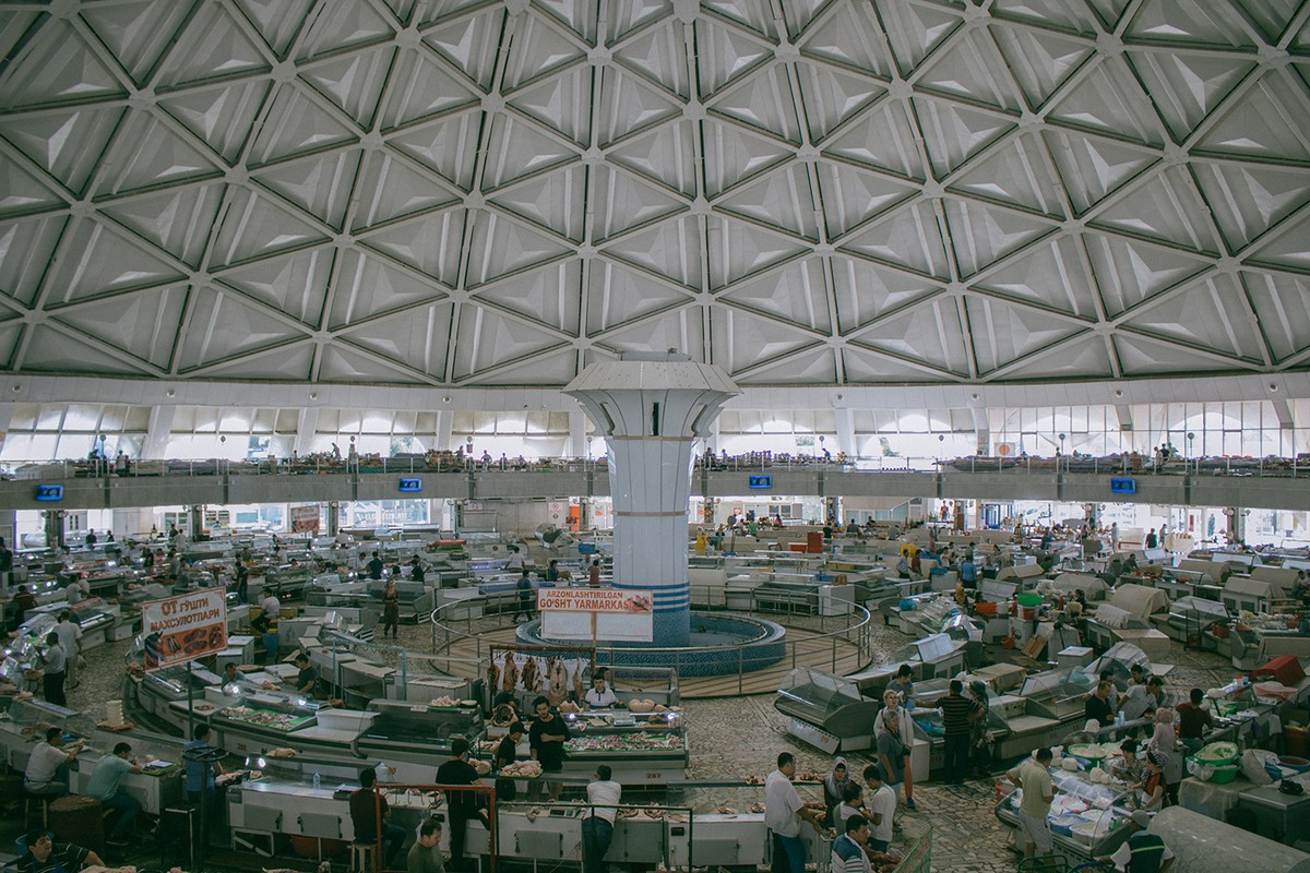 - Рынок «Чорсу». Один из немногих памятников советского модернизма в Старом городе. Его купола выполнены без единой опоры и облицованы цветной керамикой. Рядом с рынком вы увидите не менее значимый памятник модернизма — многострадальное здание гостиницы «Чорсу».
