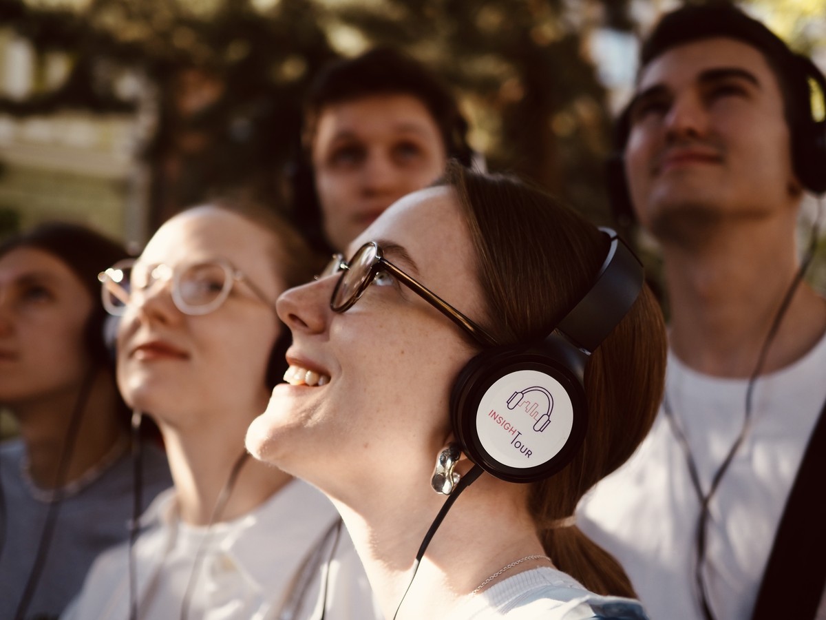- Экскурсия пешая. На маршруте, кроме актеров, группу сопровождает техник, который проводит инструктаж и раздает наушники, контролирует переходы между локациями, помогает занять лучшую точку для обзора и решает все технические вопросы.