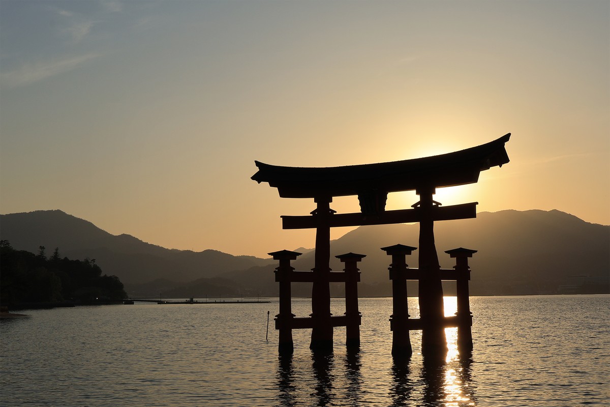 • Знаменитые ворота Тории, окутанные закатным светом