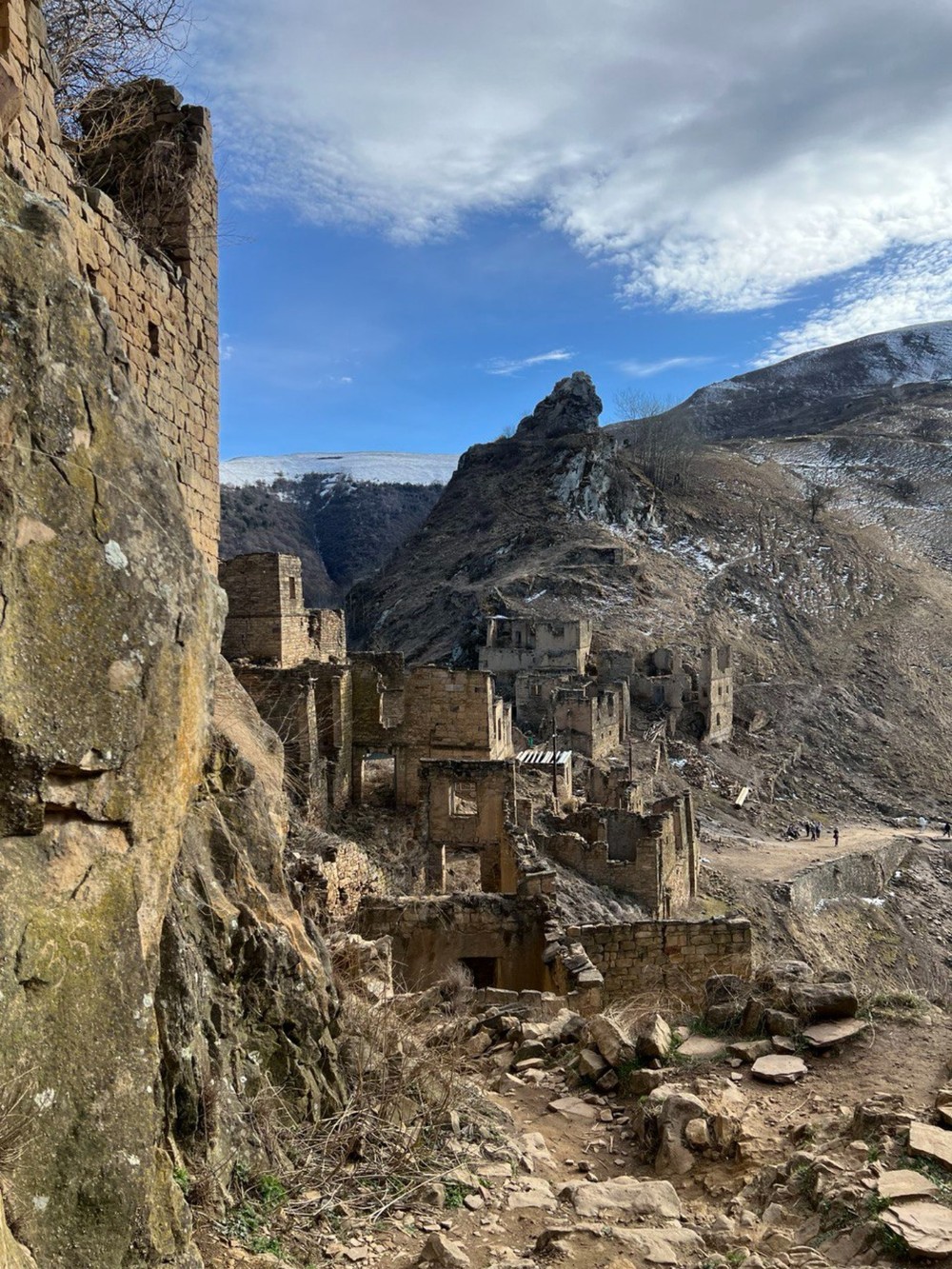 Вот и наш пункт назначения — таинственный Гамсутль. Наверх вы отправитесь самостоятельно: часть пути проедете на джипе, а затем 4 км пройдёте пешком. В ауле вы прогуляетесь по улочкам, увидите разрушенные дома и заглянете в некоторые из них — например, в дом последнего жителя. Конечно, полюбуетесь панорамой гор — из каждого уголка аула открывается умопомрачительный вид.