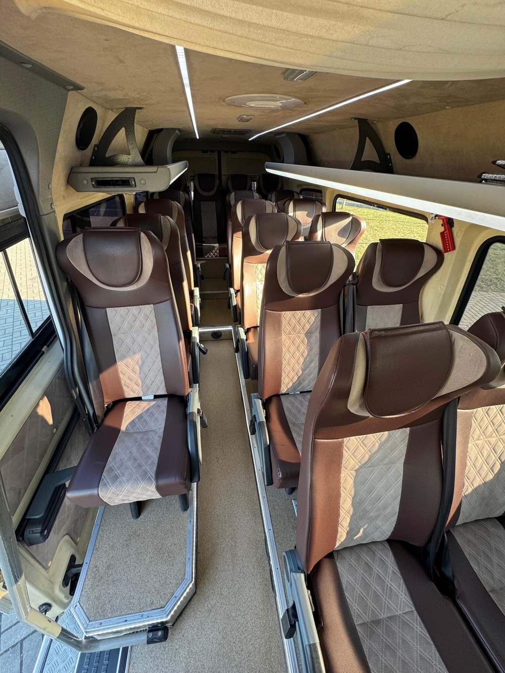 - Поездка проходит на комфортабельном микроавтобусе Volkswagen Crafter на 18 мест. У каждого ряда сидений есть USB-зарядки и откидные столики. Салон оснащён кондиционером с индивидуальной регулировкой потока воздуха и поточным монитором