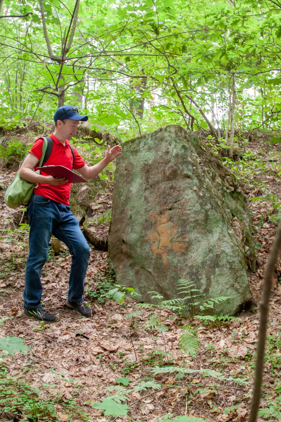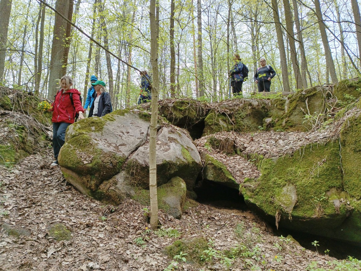 Добыча песчаника велась в этих краях уже 17 веке. В лесу выбирали такие места, где из земли выглядывали макушки валунов, их откапывали и раскалывали на куски. Вы увидите симпатичные пруды и болота, которые образовались на месте рукотворных ям и оврагов. А также посетите пещеру с сохранившимися валунами.