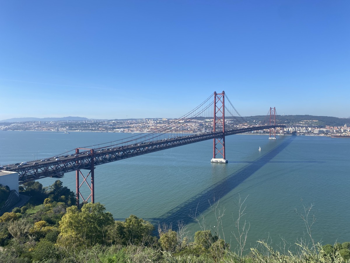 - Из района Белень по мосту 25 апреля — брату-близнецу моста «Золотые ворота» в Сан-Франциско — мы попадём к статуе Христа и напоследок окинем ещё раз взглядом весь Лиссабон и ривьеру со смотровой площадки с другого берега реки Тежу. Это самая важная смотровая площадка — ведь Лиссабон строился именно так, чтобы им любовались с реки.