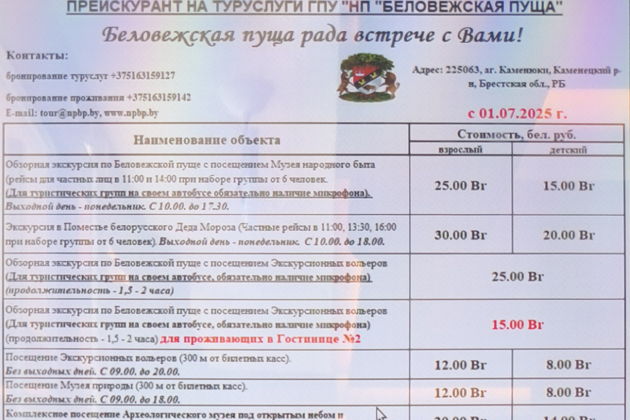 «Мне понятна твоя вековая печаль, Беловежская пуща, Беловежская пуща», –эти слова многие знают с самого детства. Вас ожидает встреча с царем пущи – зубром и другими обитателями, обзорная экскурсия с дегустацией местного напитка "Пущанка" и фирменной закуской, посещение поместья белорусского Деда Мороза, музея природы, музея народного быта и старинных технологий, археологического музея под открытым небом, вело или пешая прогулка по реликтовому лесу (входные билеты и выбранные экскурсии оплачиваются отдельно в инфоцентре). Мы сопроводим вас к имеющимся локациям и подскажем как лучше всего провести время.