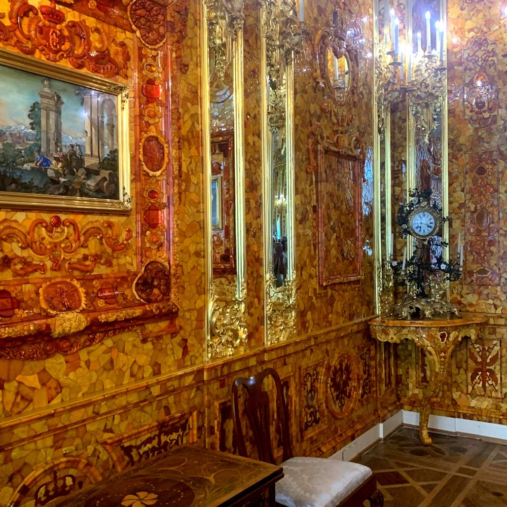Экскурсия по Екатерининскому дворцу. Вы познакомитесь с главным украшением Царского Села и символом императорской роскоши. Полюбуетесь великолепием интерьеров и уникальной Янтарной комнатой.