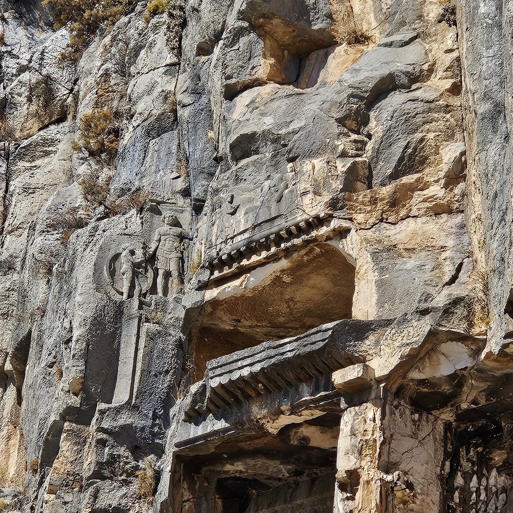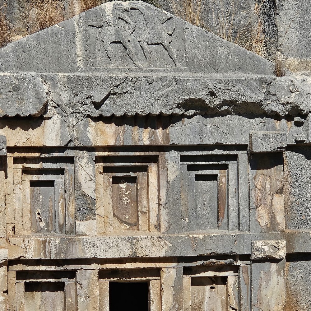В 2 км от храма сохранились остатки города Мира. Вы вблизи рассмотрите римский театр и уникальные гробницы, вырубленные в скалах. Представьте себе — им больше 2000 лет, а у большинства из них до сих пор прекрасное обрамление. Я расскажу, почему гробницы похожи на жилые дома и зачем их нужно было строить так высоко.