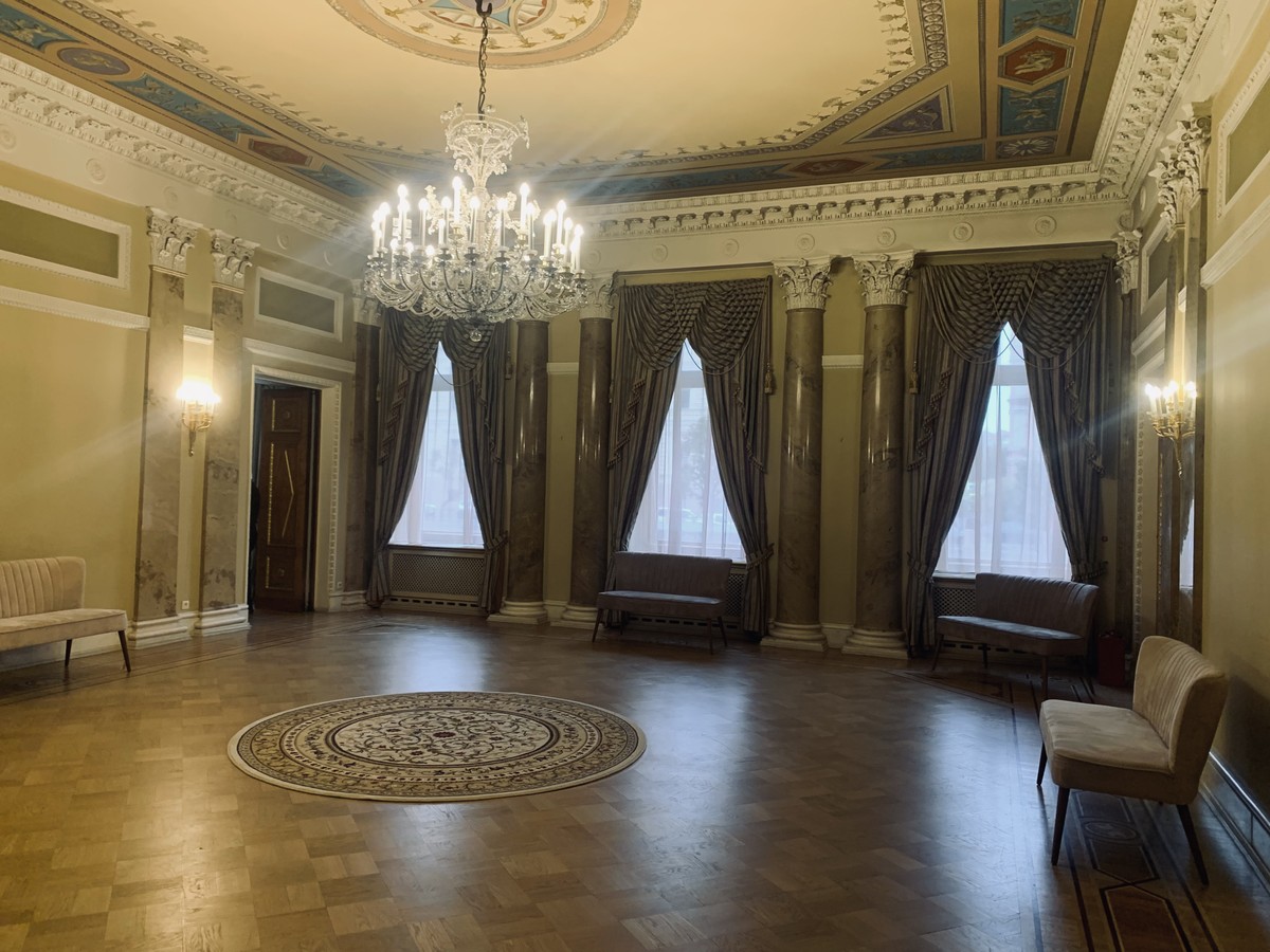 - Билет включает осмотр экспозиции, связанной с Распутиным, а также парадных залов дворца (2-й этаж). О желании их посетить сообщите гиду заранее — в этом случае длительность экскурсии составит 2 часа, стоимость программы не изменится
