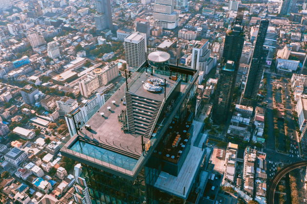 • Башня Маханакхон — один из самых необычных небоскребов в мире! Панорама города, открывающаяся со смотровой площадки, подчеркивает резкий контраст современной застройки, буквально втиснутой в узкие улочки столицы Юго-восточной Азии! Желающих пощекотать нервы приглашают прогуляться буквально над городом, по прозрачному полу, на высоте более 300 метров!