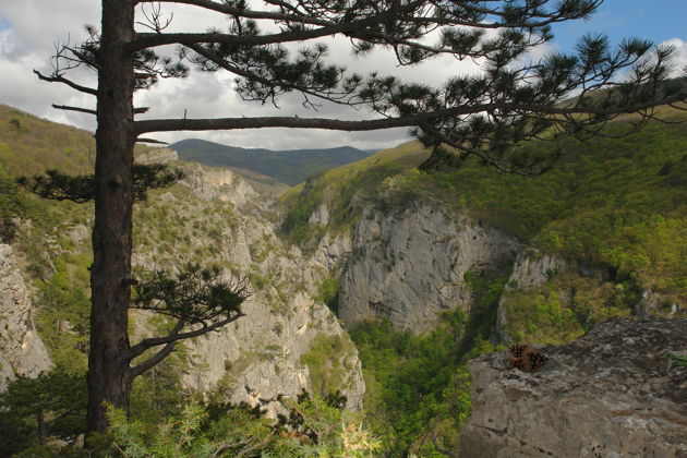 Большой каньон КрымаОсновная часть экскурсии посвящена посещению Большого каньона — геологического образования протяженностью более 3.5 км. Вы увидите Голубое озеро, Почтовый дуб и сможете осмотреть участок ущелья глубиной до 600 метров. В теплое время года доступен спуск к «Ванне молодости» — природному водоему в скалах.