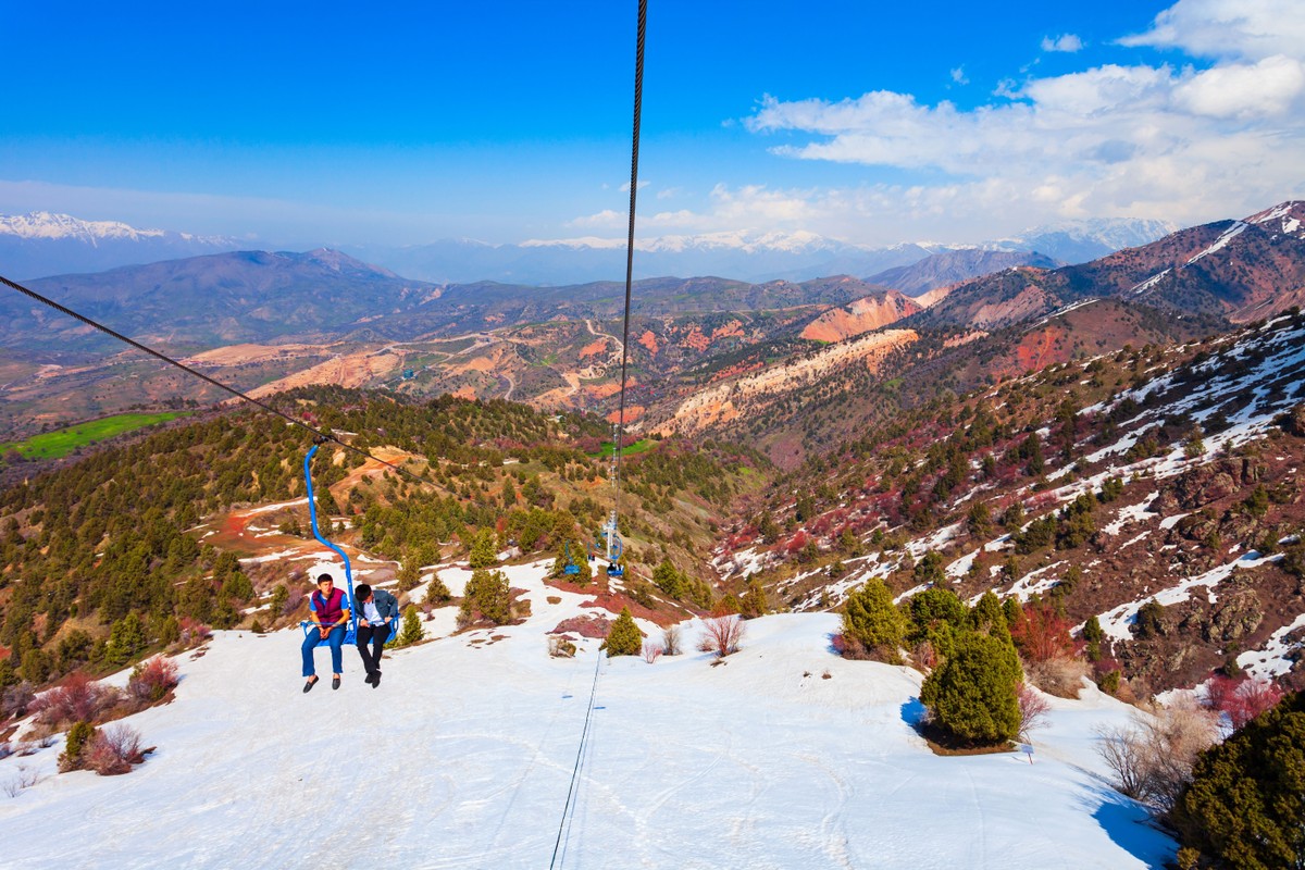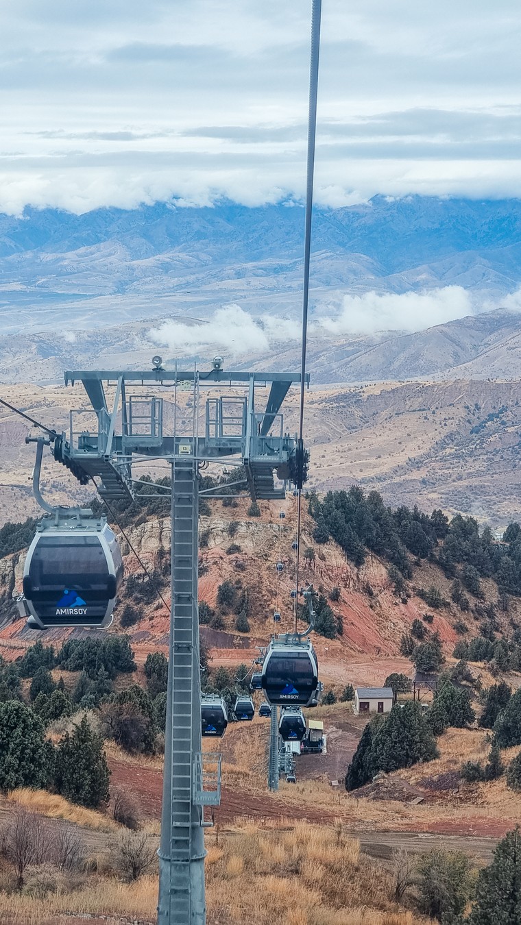 - Чиноркент — самая современная и технологичная канатная дорога в горах. Сверху открываются потрясающие виды на Чарвакское водохранилище и окрестности. Здесь можно перекусить или выпить вкуснейший турецкий чай с десертом.