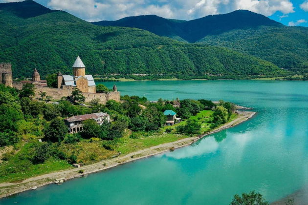 Сегодня мы повторим маршрут А.С. Пушкина, и по военно-грузинской дороге поднимемся к крепости и монастырю Ананури, которые красуются на берегу бирюзовых зеркальных вод Жинвальского водохранилища. После заедем в посёлок Пасанаури, где вы посмотрите на слияние чёрной и белой рек, а также побываете у целебного родника Слёзы соловья.