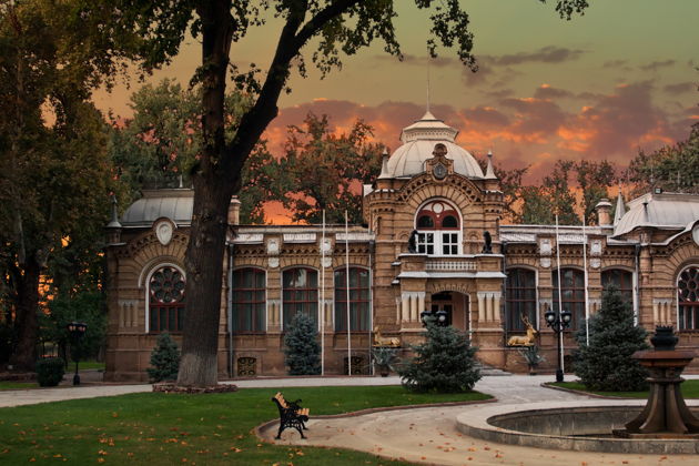 Архитектурные контрастыВ программу входит осмотр дворца Романовых из обожженного кирпича и отеля «Узбекистан», представляющего образец советского модернизма. По желанию возможна остановка в центре плова «Беш-казан» для знакомства с национальной кухней.