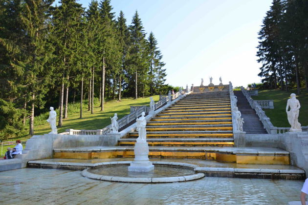 Мы обязательно побываем в Нижнем парке Петергофа. Он протянулся вдоль побережья Финского залива на 2 километра, общая его площадь составляет 102 гектара. Летом в нем одновременно функционируют около 150 фонтанов и 4 мощных каскада.