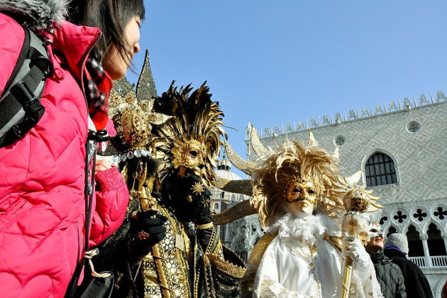 Но это раньше шалили. Вдали от дома и семьи. А сейчас время поменяло все с точностью до наоборот, и теперь на венецианский карнавал приезжают семейными парами, едут в общем в Тулу со своим самоваром. И все-то приключение — это натянуть на себя костюм Незабудки, поглазеть на народ, разряженный в фижмы и кружева, чинно выпить гоголь-моголь с обещающим названием «Казанова» в кафе Флориан. Да, с трансгрессией уже не очень. Но все равно есть, есть чем заняться. Например, сходить в оперу Фениче в облачении венецианского дожа или поучаствовать в гламурных балах в интерьерах старинных дворцов.