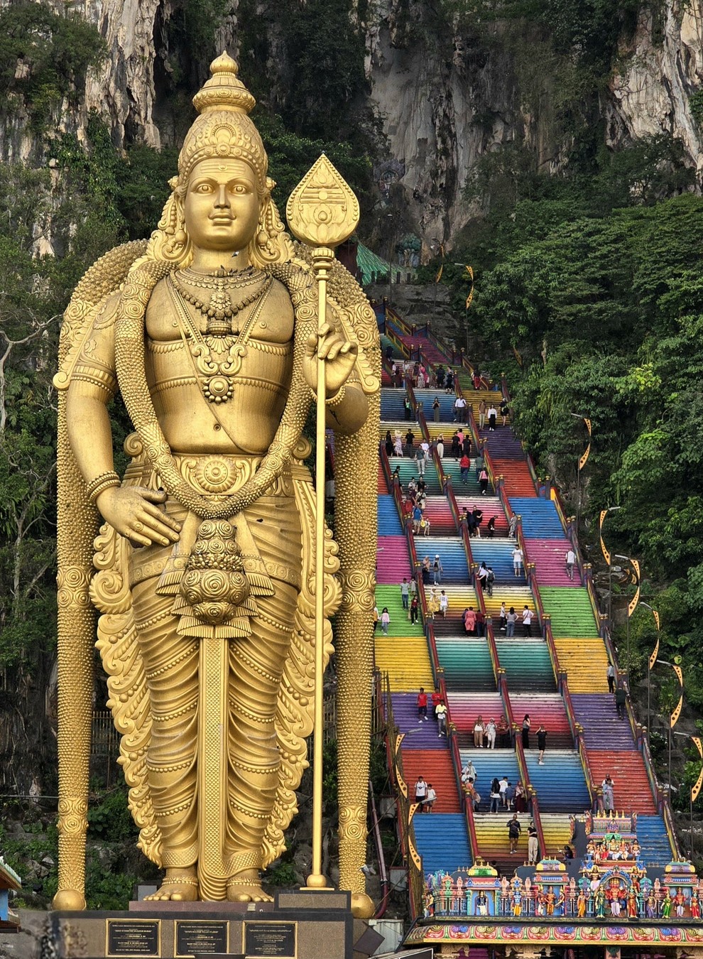 Бату — священное место для индуистов. Они посвящены богу войны Муругану: его золотой памятник высотой 42,7 метра установлен у подножия лестницы. Каждый год здесь проходит красочный фестиваль Тайпусам, привлекающий миллионы паломников. Вы узнаете, когда возникли пещеры и почему именно здесь появился индуистский храм.