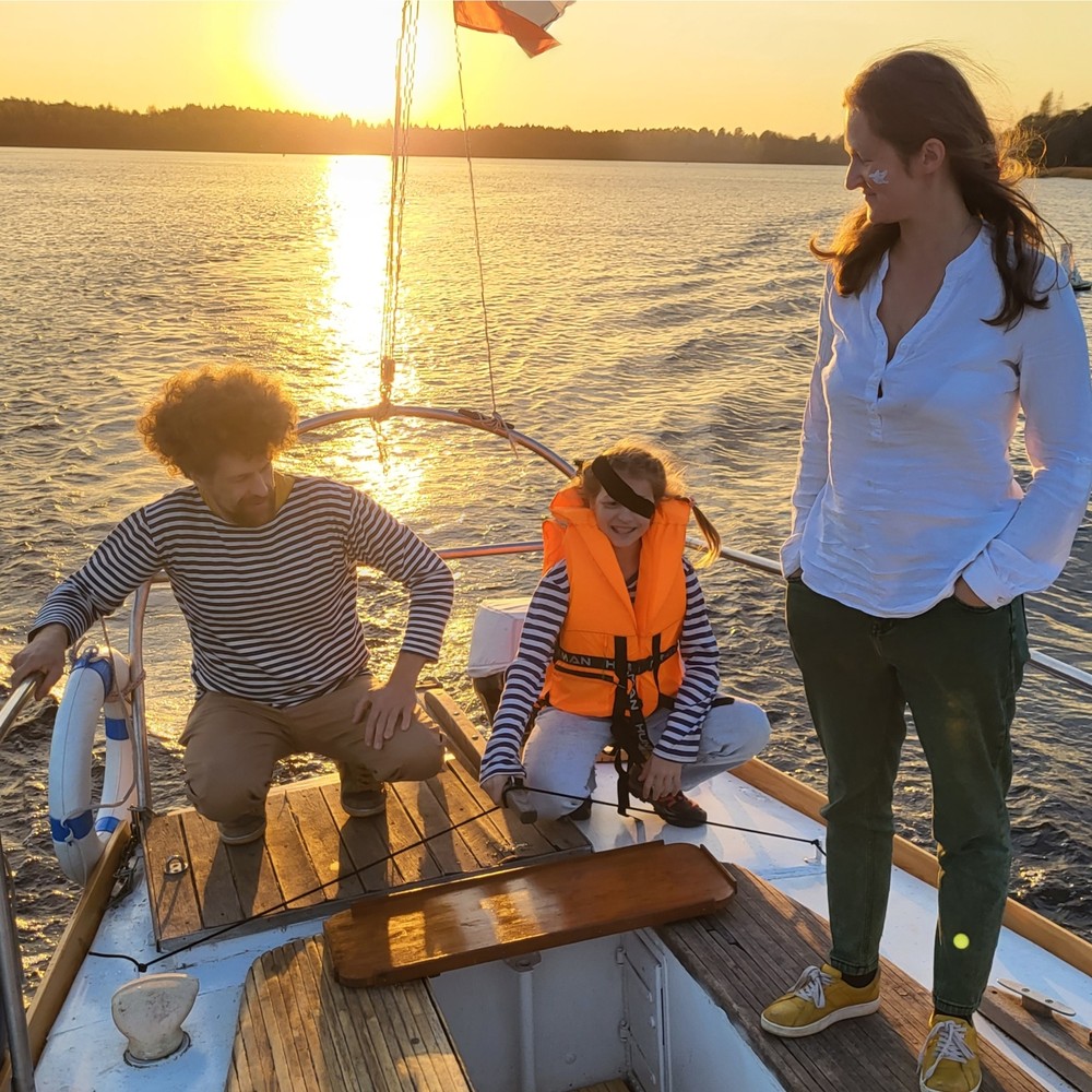 - Автомобильная часть поездки проходит на восьмиместном автомобиле (есть детские кресла), водная — на парусной килевой стальной яхте «Даная» 1982 года (есть каюта и тент от дождя/солнца)