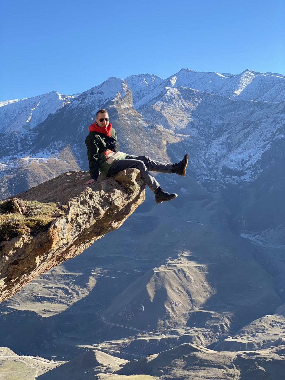 Язык Тролля. Этот скальный выступ в Безенгийском ущелье добавит нотку экстрима в наше путешествие. Смельчаки залезут на него и сделают эффектные снимки. Также отсюда открываются потрясающие виды на горы.
