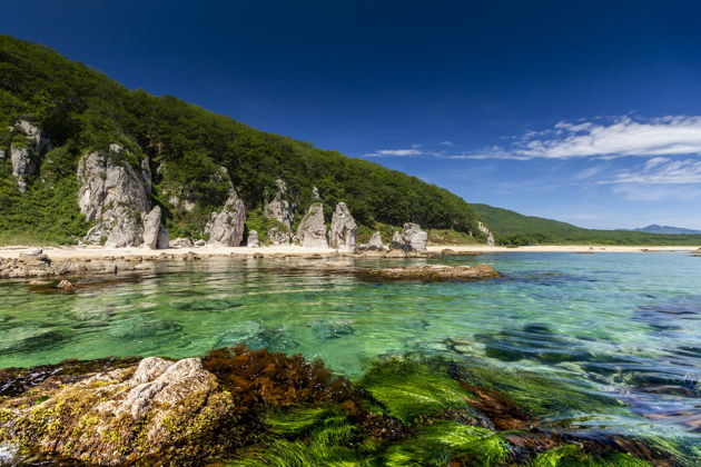 На территории Лазовского заповедника имени Капланова есть красивейшие бухты с прозрачной бирюзовой водой и разнообразием морских обитателей. Прибойную полосу украшают причудливые кекуры, а по берегам растут редкие виды растений.