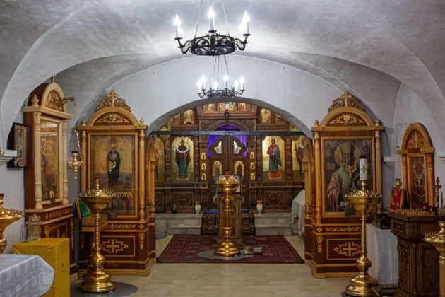 Для иконостаса церкви в Никитниках великий иконописец Симон Ушаков написал образ «Древо Государей Российских», которая ныне хранится в Третьяковской галерее, а в церкви вы увидите ее список. А еще вы увидите каменную чашу для освящения воды «Иерусалимская роза», изготовленную из камня, добытого в Святой Земле. Вес чаши 600 кг и из такого же камня изготовлена Кувуклия в Иерусалиме.
