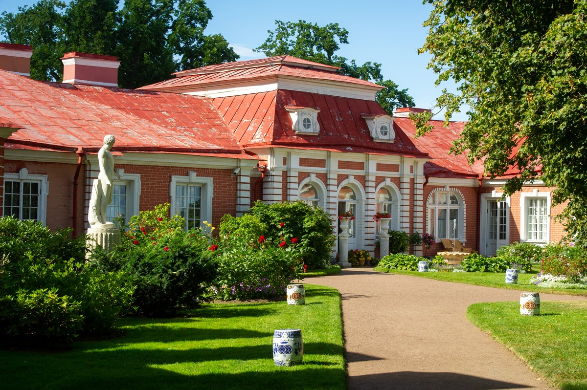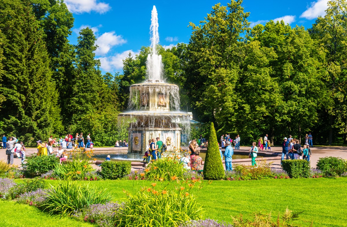 Она огромна. Гид проведёт вас по маршруту, чтобы вы увидели максимум достопримечательностей. От Большого дворца, перед которым сверкает золотом Большой каскад и бьёт мощный фонтан «Самсон, разрывающий пасть льва» вы пройдёте к Нижнему парку. В его восточной части полюбуетесь дворцом Монплезир, каскадом «Шахматная Гора», «Римскими фонтанами», фонтанами-шутихами. В западной части вас встретит павильон Эрмитаж и дворец Марли, каскад «Золотая гора», «Менажерные» фонтаны.